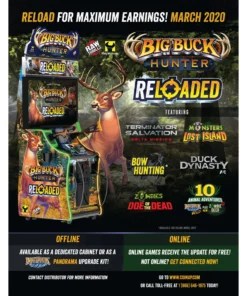 Celebrate 20 years of the world’s favorite hunting game with Big Buck Hunter®: RELOADED! This definitive entry in the series features more content than you can shake a stick at – including new hunts (Zombie Deer), new weapons (Bow Hunting), and new story-driven campaigns – including In Case of Monsters: Lost Island and Terminator Salvation: Delta Mission! No matter where your adventure takes you, get there faster with a new player-friendly interface – and enjoy it all in a new, eye-catching cabinet design! Get connected and enjoy the competitive online features that made Big Buck Hunter the first name in arcade Esports. All this and a new money-saving business model!