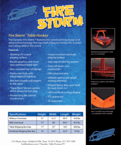 The Fire Storm Air Hockey Table features precision rod or dome mechanics, durable construction, and reliable scoring systems designed for intensive use in both home and commercial environments.