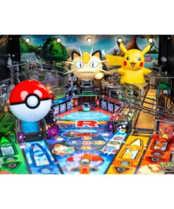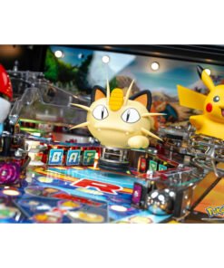In Pokémon by Stern Pinball, Trainers embark on an unforgettable journey across four distinct habitats, discovering, catching, and bonding with many of their favorite Pokémon. Players will shoot the illuminated, mechanically animated Poké Ball to catch Pokémon, build their ultimate team, and complete their Pokémon Collection. The playfield also features beautifully crafted Pokémon-themed ramps, spinners, and targets. Watch as the animatronic Pikachu reacts to your gameplay, cheering you on every step of the way! Trainers can battle their way through rival trainers and compete in the arena through dynamic, custom battle sequences. Danger lurks as Team Rocket and their infamous boss, Giovanni, plot trouble. The interactive Meowth Balloon toy swoops down onto the battle arena to challenge the Trainer. Premium and Limited Edition games include an interactive electromagnet that adds chaos to the battle arena.
