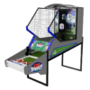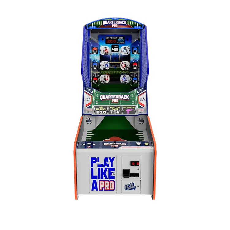 Score a TD with ICE’s latest sports game, Quarterback Pro! Hit Don’t Miss! Footballs will dispense from the built-in conveyer belt. Players skillfully throw balls at the pop out targets trying to correctly time and complete passes to score touchdowns. After 30 seconds of reading and reacting to hit targets, the last 15 seconds are rapid fire. Once a player scores one hundred yards, they will be awarded a touchdown. At the end of the game the players will receive a Quarterback rating based on accuracy and touchdowns thrown. If a player’s Quarterback rating is in the top 5 high scores it will be featured on the leaderboard.