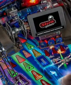 Designed by Steve Ritchie, the game focuses on the original Star Wars trilogy. The game will immerse players in the dynamic and challenging Star Wars pinball environment as they battle to restore justice to the Galaxy. Stern’s Star Wars Limited Edition machines are packed with features that provide an irresistible game experience. The game includes select speech and footage from the original Star Wars trilogy; color-changing LED-lighted inserts; a sculpted LED-lit Millennium Falcon; and a sculpted TIE Fighter. The Limited Edition model also feature two LCD screens, an exploding Death Star interactive display, and a hyperspace ramp. The Limited Edition model is limited to 800 units and is a highly collectible item for any Star Wars fan.