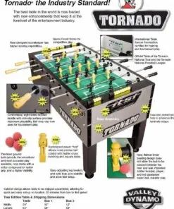 The Tornado T-3000 Tournament Foosball Table is Tornado’s finest quality commercial grade table. The best table in the world is now loaded with new enhancements that keep it at the forefront of the entertainment industry. The T3000 sets the industry standard for smooth play and reliability.