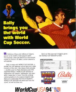 World Cup Soccer pinball machine is based on the 1994 FIFA World Cup. It is a great family pinball machine for those with kids who play sports.